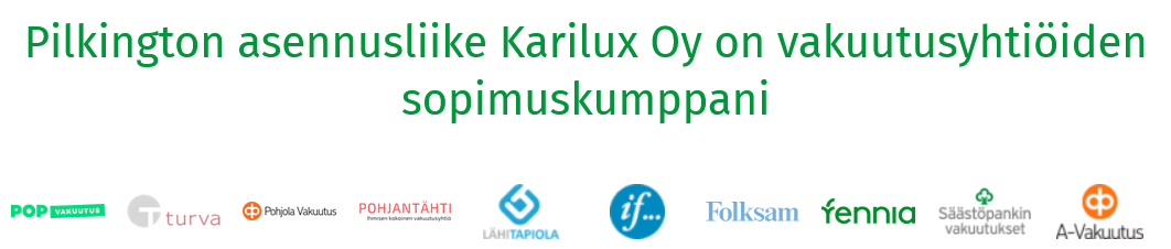 Me asennamme alkuperäiset Pilkington ajoneuvojen lasit.